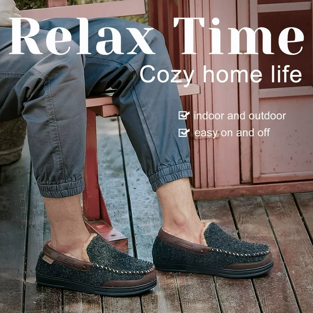 - SIZING TIP: The indoor and outdoor moccasin slippers come in 6 sizes (size 8, 9, 10, 11, 12, 13) could fit most standard feet. You may feel snug at first due to the memory foam, compress the insole a bit and they will fit better. Available color in black, grey, and brown