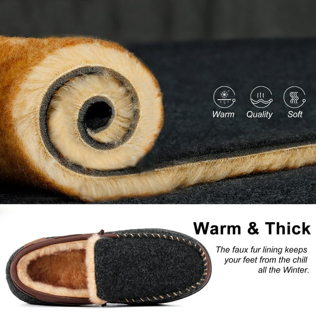 - ClASSIC STYLE: Classic moccasin Design makes these slippers attractive. A perfect combination of soft felt upper and micro suede provides you with ultimate comfort and warmth. Exquisite half-surround hand stitching shows your taste, gentle and polite